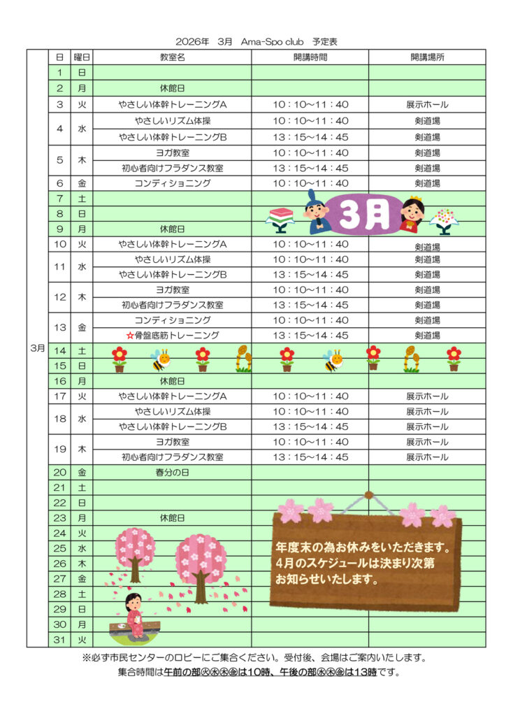 Ama-Spo clubは、気軽に参加いただけるスポーツ教室です。